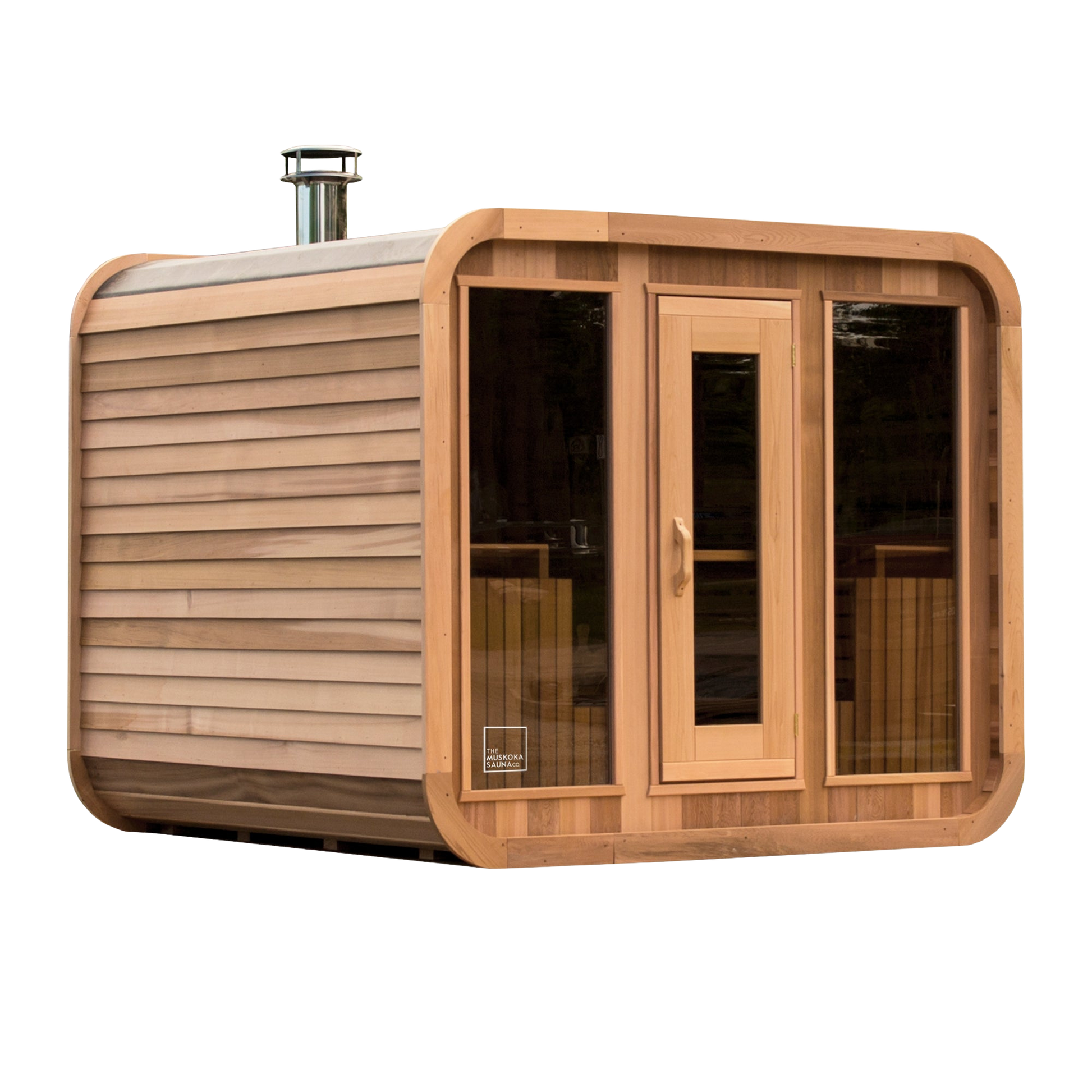 The Luna Sauna is a modern and unique outdoor cedar sauna that is perfect for your home or cottage. It features gently rounded corners for added appeal and ample interior space. Crafted from Canadian Clear or Knotty Cedar, it is not only durable but also has a lovely aroma.