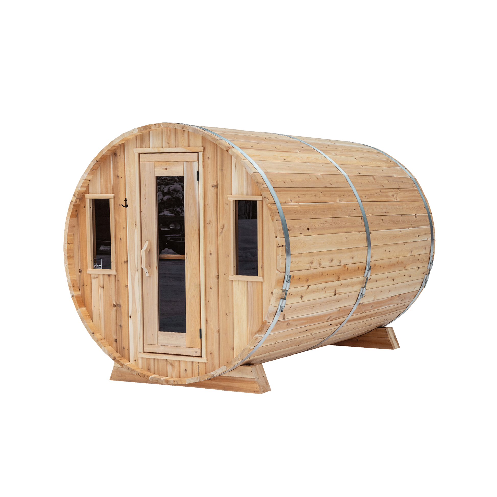 Crafted from Canadian White Cedar with your choice of wood burning or electric stove options. Sauna seats 6 guests comfortably and comes standard with :