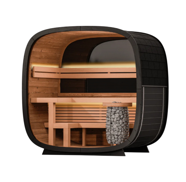 Black Cube Classic is the most compact model in the range, designed for tight outdoor spaces while still offering a proper sauna layout for up to four. Classic is intended for use with an electric heater only making it a practical choice where simple installation and a minimal footprint are the priority.