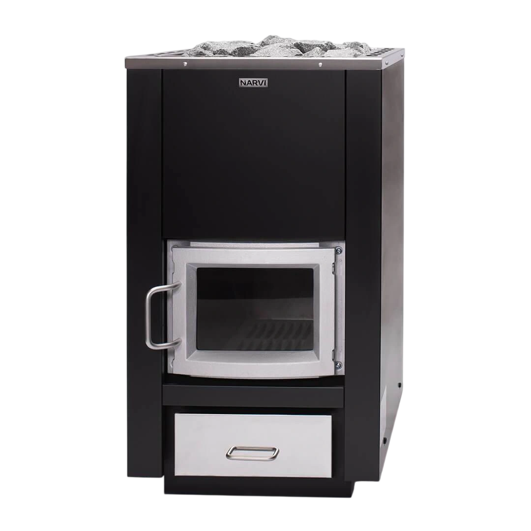 Narvi sauna heaters are celebrated for their top-tier quality and exceptional performance, effortlessly providing abundant steam for larger saunas. This allows multiple users to unwind in luxury simultaneously. The splendid sight of the burning fire, visible through the elegant glass door, adds an authentic and inviting ambiance.