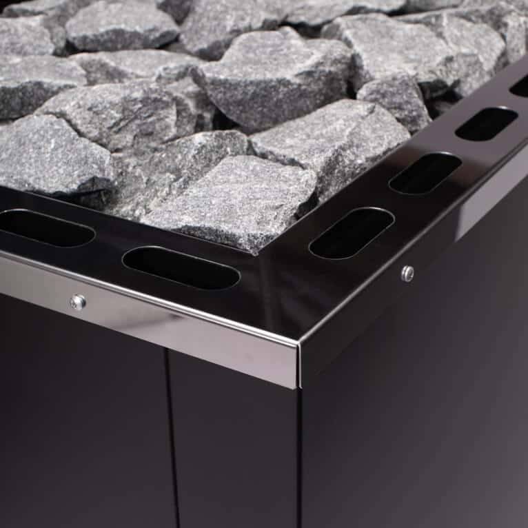 Constructed from robust painted steel sheet, the durable exterior casing is designed to withstand heavy-duty use. This makes it an excellent choice for those seeking a premium, heavy-duty sauna heater that will stand the test of time. Depending on your specific requirements, the connection flue can be skillfully installed either from the top or the rear of the heater.