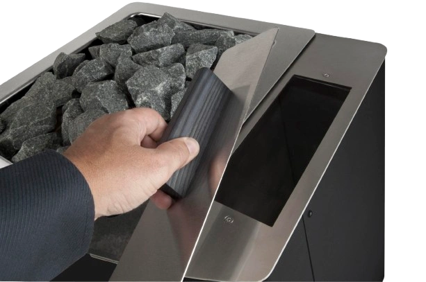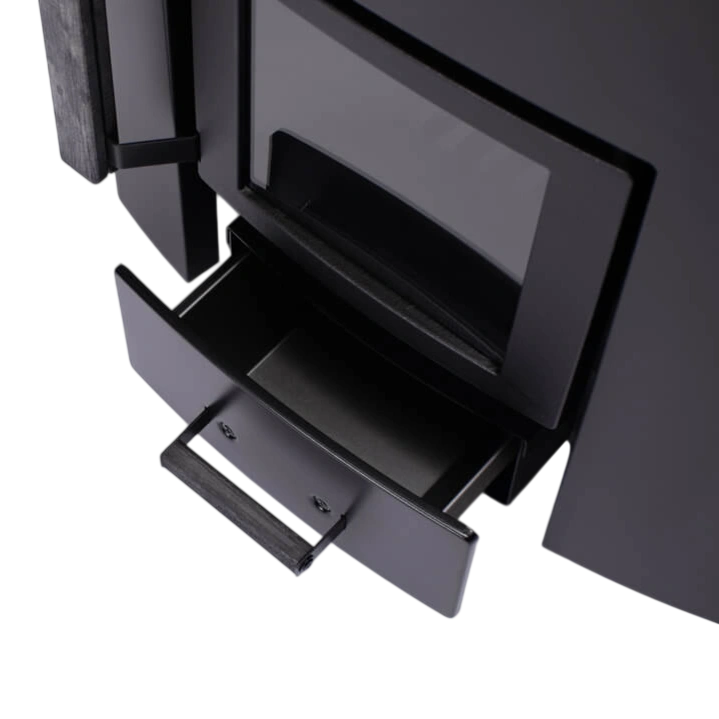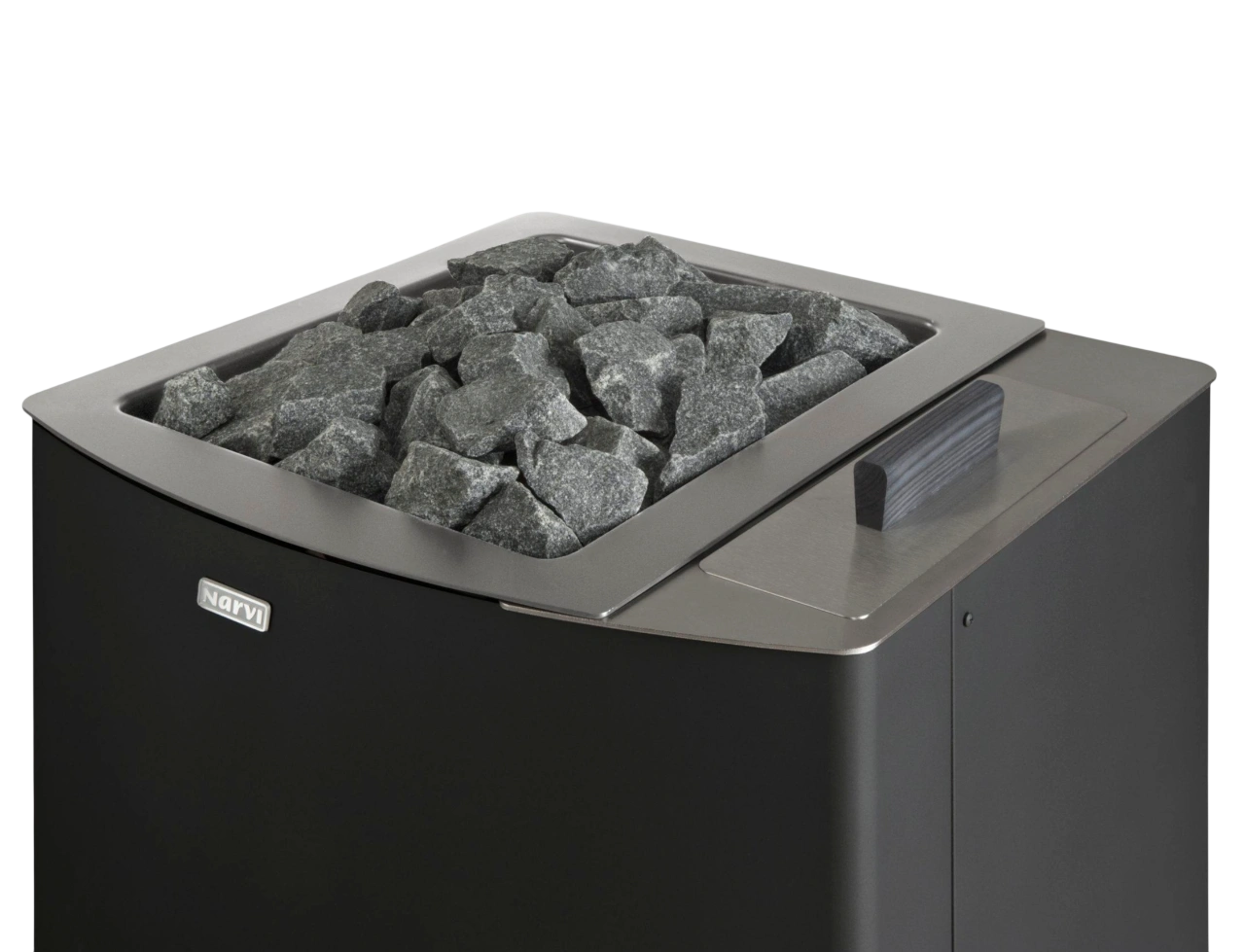 The NARVI NC 20 features a robust design with a large volume of stones to produce consistent steam. Despite its substantial size, the stove requires minimal firewood to heat up. Its innovative firebox design ensures efficient and cleaner combustion, and the heater complies with CE emission requirements.